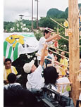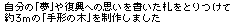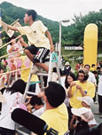 今回のイベントのテーマは「キャンペーンのふる里で新潟・山古志、福岡・玄界島の震災地の友と交流」。夢みるこども基金の「こども会議」の出席者15人、山古志の小、中学生24人、玄界島の小、中学生29人を始め、地元のホームスティ先の子ども達、基金の役員、ボランティア、高森町民など総勢650人と、これまでで最も多い参加者でした。 30日の前夜祭で顔合わせをした子ども達は、バーベキュー、花火などで遊び、交流した後、高森町内の民家にホームスティ。すぐ仲良しになりました。 31日は午前中、高森町の上色見小学校跡地と町民体育館でグランドゴルフ、紙飛行機、木工品作りなどを行った後、正午から町民体育館で開会式が行われました。 基金の子どもたち3人が、作文やイラストに託して入賞した自分たちの「夢」を語った後、山古志と玄界島の子どもの代表が、震災時のすさまじい体験やふるさとの状況、仮設住宅での生活などの現状を報告するとともに、全国からの励ましに感謝の言葉を述べました。 イベントに参加できなかった山古志と玄界島の子どもたちのために、参加した子どもたちが全員で作った木工の置物をお土産としてプレゼント。「山古志と玄界島の子どもたちの明るい笑顔は、みんなに勇気と希望を与えてくれました。私たちはこの出会いを胸に刻み、夢を持ち続けて一生懸命生きて行きたい」との「こども宣言」を発表しました。 基金の理事を務めるアグネス・チャンさんも歌を披露。最後に子どもたちは、自分たちがそれぞれの夢を記した木板の手形をモニュメントの木につり下げて、阿蘇の大自然の中で育んだ友情を胸に、高森町を後にしました。 |
